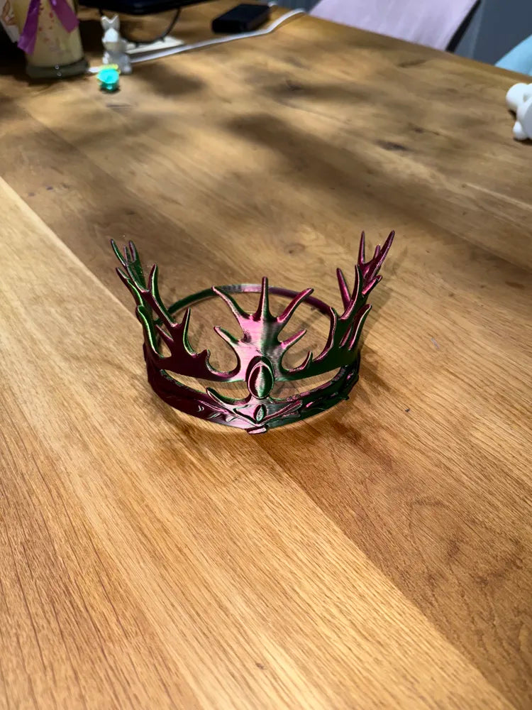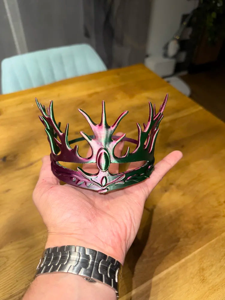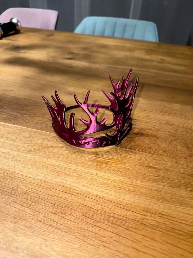 قطعة فنية مستوحاة من التاج الملكي لعالم Game of Thrones — تصميم أنيق يرمز للسلطة والصراع في المسلسل الملحمي، مثالي للعرض في ركن خاص أو كجزء من ديكور بطابع ملكي.